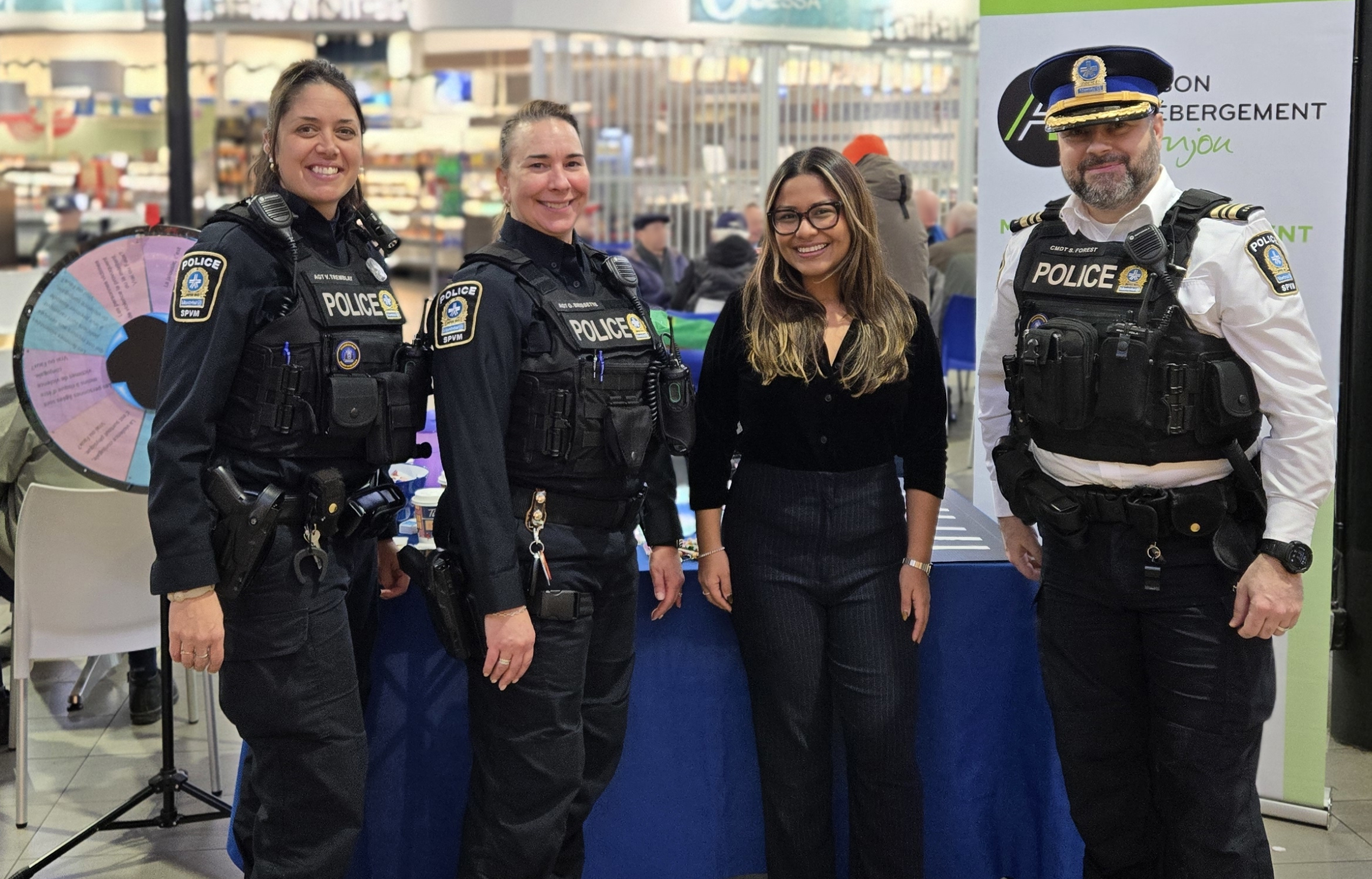 L’agent Laplante, les agentes sociocommunautaires Geneviève Brissette et Valérie Tremblay, ainsi que le commandant Stéphane Forest, accompagnés de Mme Vanessa Morales, intervenante à la sensibilisation pour la Maison d’hébergement d’Anjou, ont échangé avec plusieurs citoyennes et citoyens afin de rappeler les signes de violence conjugale, les ressources disponibles et l’importance d’agir pour soutenir les victimes et leurs proches. Un outil interactif permettant d’aborder plusieurs mythes persistants entourant la violence conjugale a également contribué à nourrir les échanges.